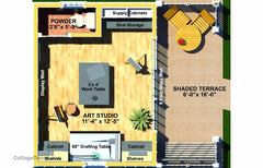 Realizing that many people want to use their backyard for their business, hobby or art pursuits, we have a few examples of our Backyard Studios, studio sheds and home office sheds built around our incredibly inexpensive floor plans. In the units shown below, you'll see what you can fit into our surprisingly accommodating cottages. Our layouts are not fixed anything in our Studio collection can be customized. Perhaps you're looking for a Pool Cabana, Play House or Writer's Loft; any of these floor plans are suitable for whatever you have in mind.